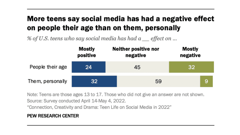 A recent survey conducted by Pew Research found that most teens feel like they have deeper connections and have more support in their daily lives because of social media. But the same survey showed that 41 percent of teens say social media has had a “mostly negative” effect on other teens they know, and/or themselves.